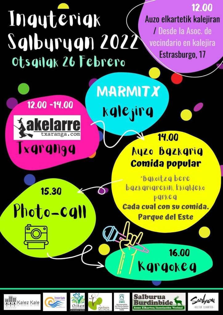 Eta aurreko asteburuan… AUZOKO INAUTERIAK martxan jarri genituen! Horretarako, Alaitz Andreuri ipuin bat sortzeko eskatu genion: Marmitx eta Armitxoen istorioa. Gurasoei audioa watsapez bidali… eta larunbata goizean AKELARRE txarangaren laguntzaz kalejira egin genuen auzoko kaleetan barrena (tranbiaren obrak saihesteko nahikoa lan!). Ekialdeko parkean batuta, su bat egin genuen neguan izan ditugun zorigaitz eta jasan ditugun bidegabekeria guztiak bertan erretzeko. Lantzeko Zortzikoa dantzatuz agurtu genuen Marmitx hurrengo urtera arte. Nahi zuenarentzat, bertan auzo bazkaria, karaokea eta PhotoCalla ere jarri genituen.