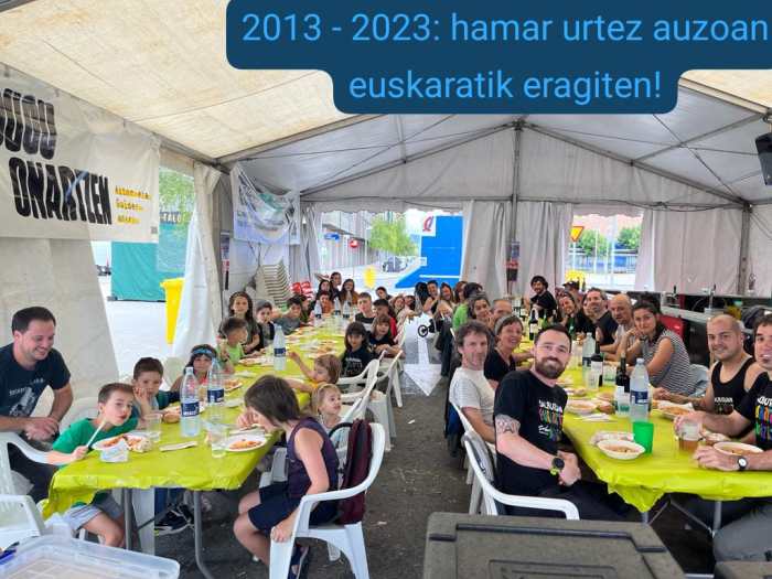 Euskara eta euskal kulturaren aldeko hamarkada. Txiri-txiri eta apaltasunez, norbanako, elkarte ezberdin eta zuok guztiokin elkarlanean. Horrela izan dadila beste hainbeste urtez ere! Gora Salburua euskalduna! Gora Sarburu! 🎂