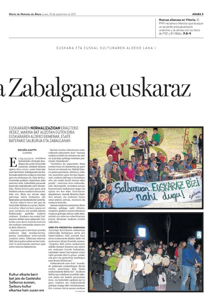 Diario de Noticiasek Sarbururen aurkezpena baliatu zuen honen zein orduko Zabalganako euskararen aldeko taldearen gaineko erreportajea egiteko 👇🏼