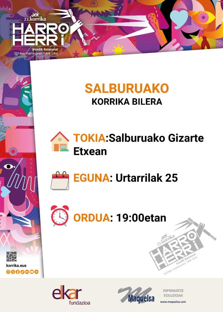 Badatorrela! Badatorrela! Korrika badatorrela! Auzoa berotu eta prestatu dezagun datorren ostegunean daukagu lehen hitzordua. Korrikaren olatura batu eta etor zaitez!